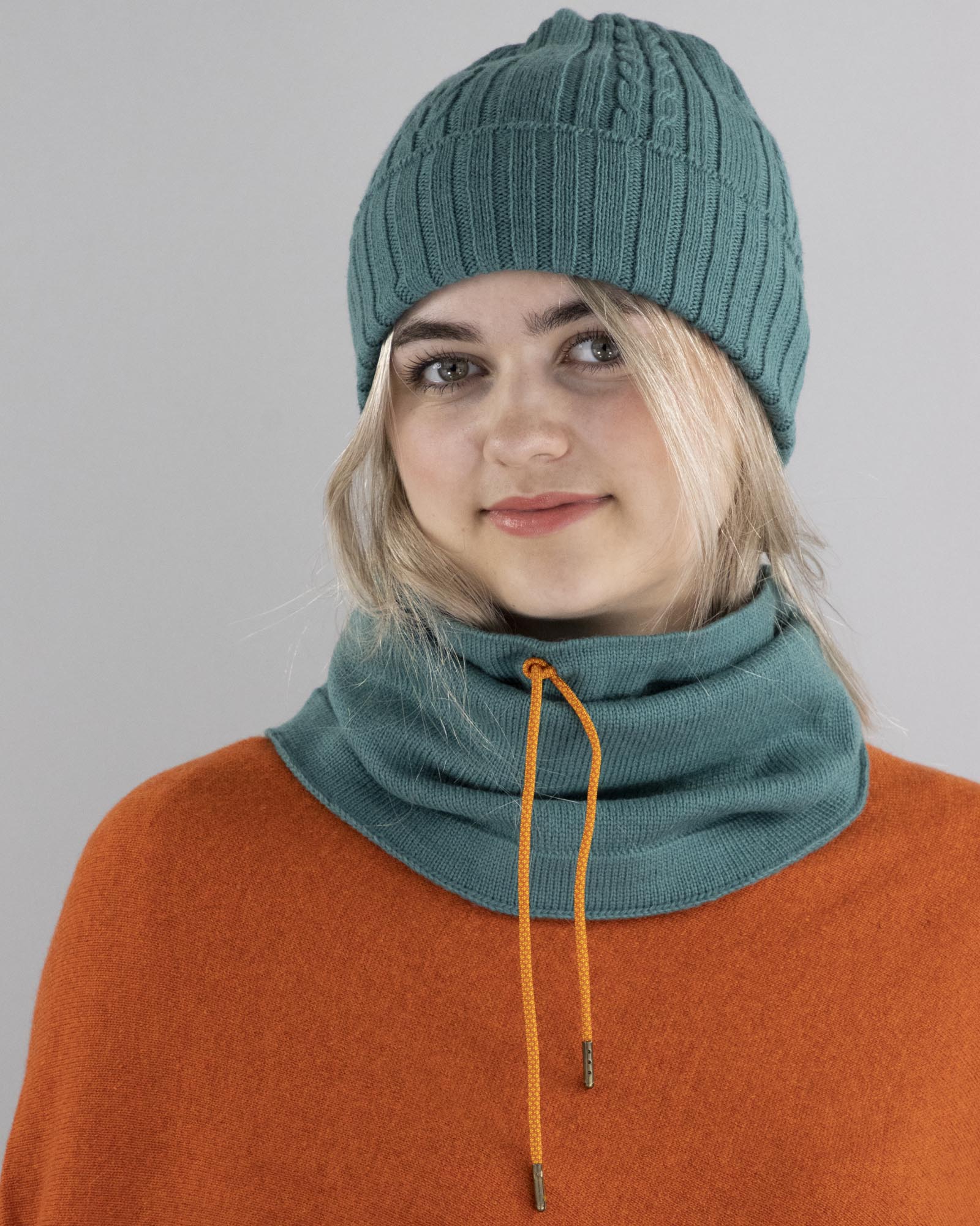 mill in Yorkshire. This drawstring snood, if washed carefully, will look and