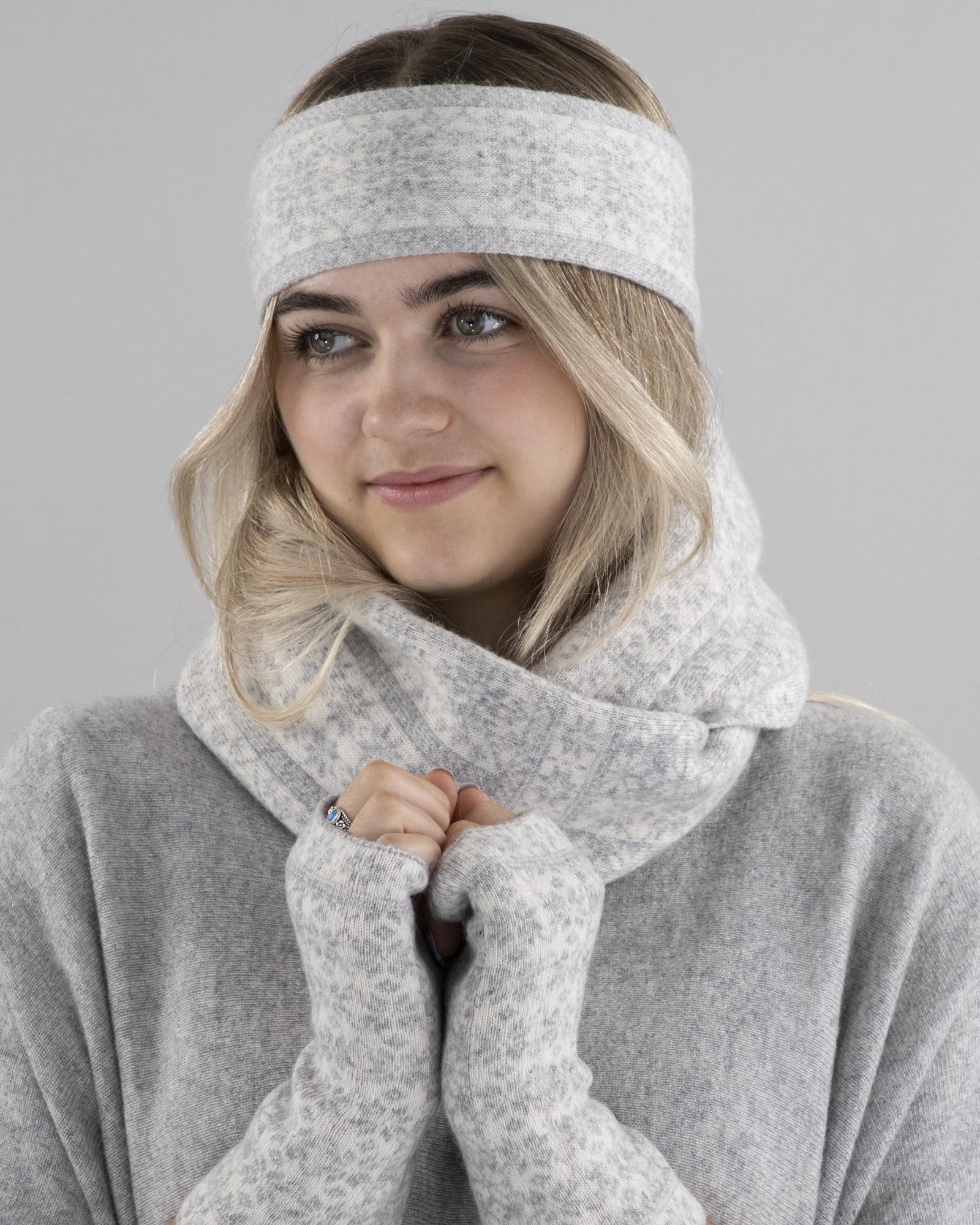 Using traditional Scandinavian snowflake and star motifs combined with a pretty, muted colour combination, our cashmere blend Scandì snood has a timeless, classic appeal. Knitted in a double jersey, it is made to feel luxuriously cosy and keep out the cold, as well as to look fabulous! Long enough to circle the neck twice comfortably, this is going to be a stylish way to keep warm this Winter!